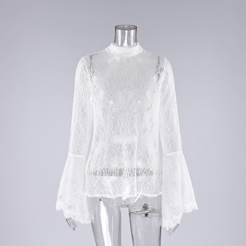 Elegant Floral Lace Mock Neck Blouse