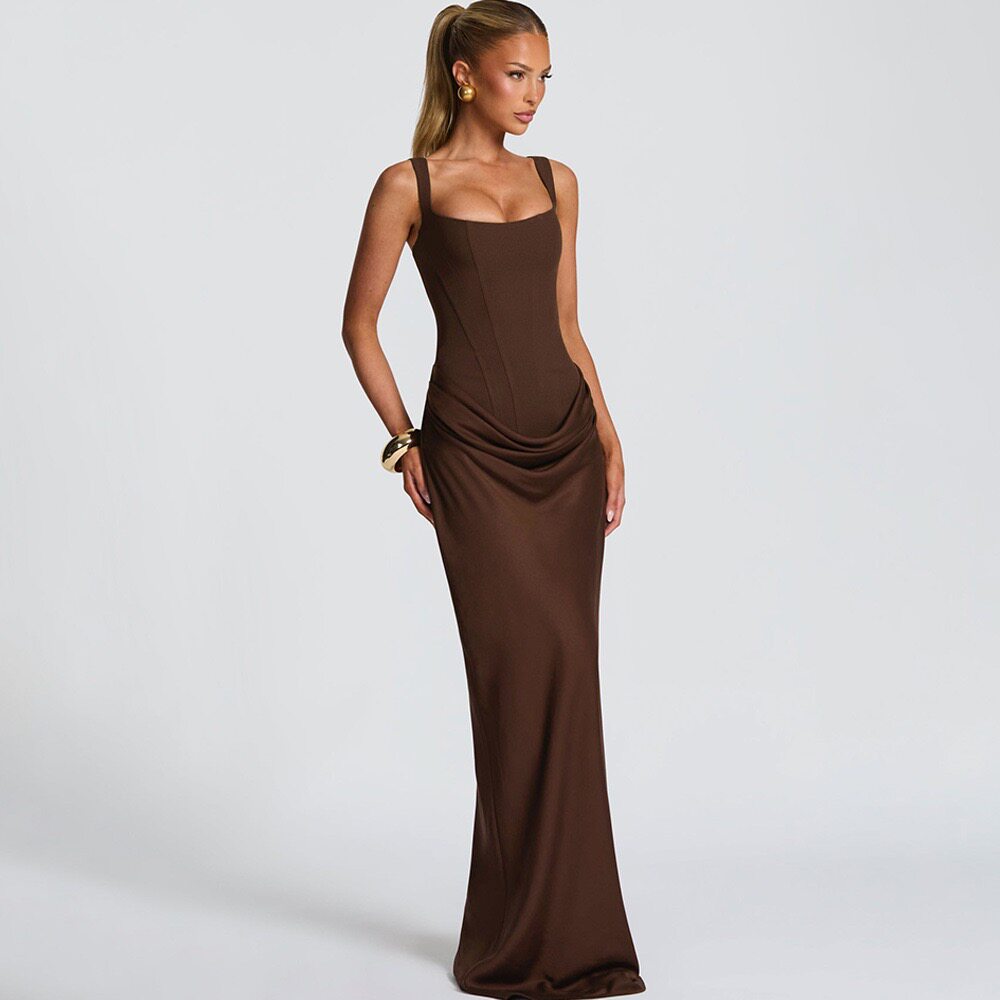 Old Money Aesthetic Corset Maxi Dress